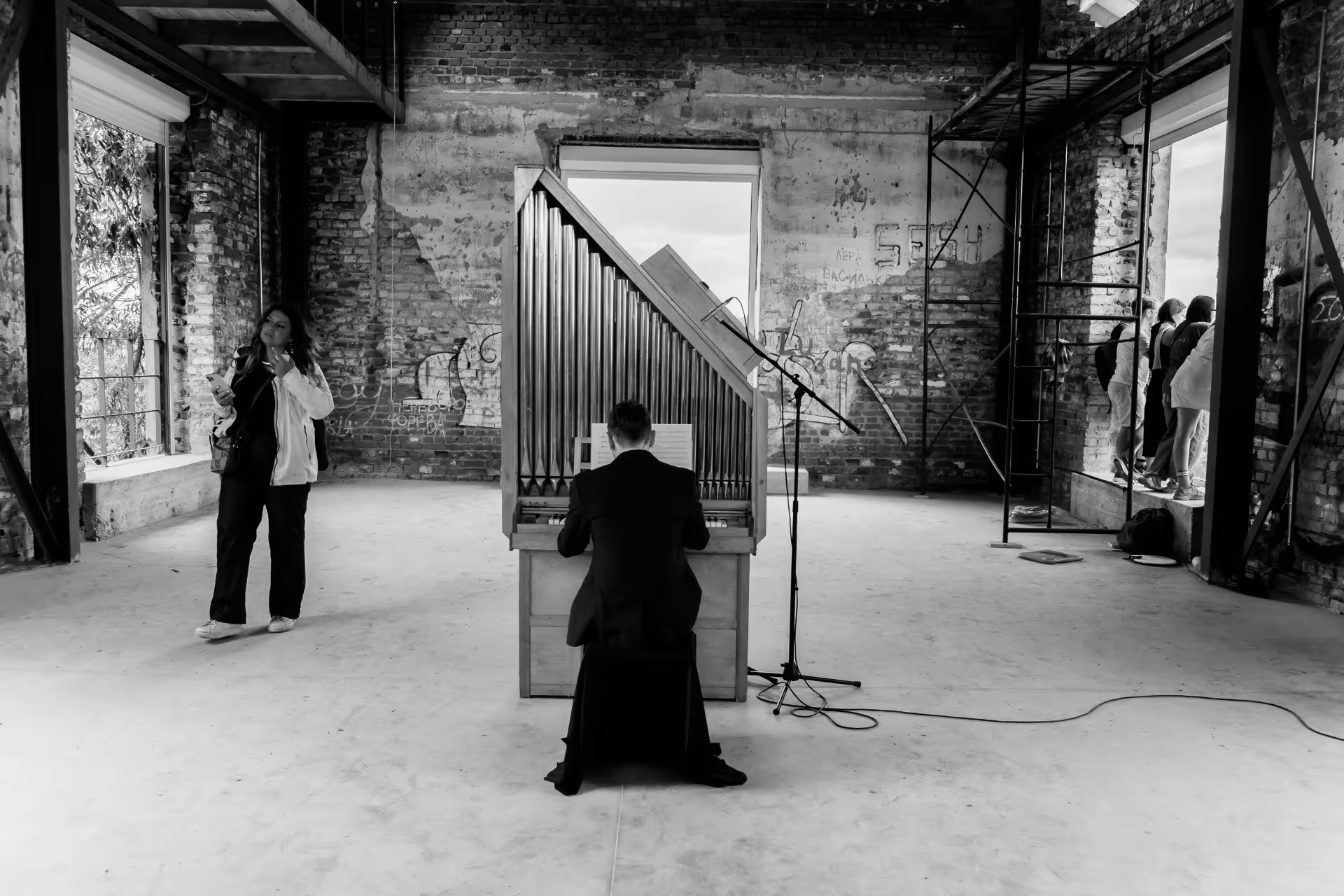 Музыкальное сопровождение ансамбля для органа, голоса, мандолины, баяна, фортепиано и контрабаса в сочетании с игрой актёра Алексея Гнилицкого.